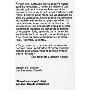 Fascinée par le scandale que suscita la liaison entre une aristocrate et son palefrenier au temps de la famine, Kathleen décide de rentrer en Irlande. Mais après trente ans d'absence, elle retrouve une terre natale captive de ses chimères. Entre la résurgence de l'Histoire et de sa propre enfance, son enquête se mue en questionnement sur l'exil, le désir et l'identité... " Ce gros roman, dans lequel on se roule comme dans un édredon et qu'on voudrait encore plus épais, vous réconcilie avec le genre humain. " Éric Neuhoff, Madame Figaro Traduit de l'anglais par (Irlande) Stéphane Camille