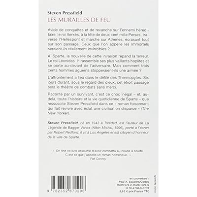 480 avant J.-C. Les armées de l'Empire perse, conduites par le roi Xerxès, traversent l Hellespont, actuel détroit des Dardanelles. En tout, près de deux millions d'hommes s'apprêtent à envahir la Grèce. Pour retarder leur approche, Sparte envoie à leur rencontre trois cents soldats. Dans le défilé des Thermopyles, surplombant à pic la mer Égée, ils vont écrire l'une des pages les plus sanglantes et les plus héroïques de l'histoire antique. Au terme de six jours d'un combat acharné, vingt mille Perses sont tombés, mais les Spartiates sont massacrés. Seul survivant, le cavalier Xéon, fait prisonnier, raconte à Xerxès le destin de ses camarades? « En tournant les pages, on a l'impression de se battre dans les rangs des soldats spartiates? Un roman homérique ! » (Pat Conroy, auteur du Prince des marées ). Traduit dans douze pays, Les Murailles de feu est resté six semaines parmi les best-sellers du New York Times . Paru en 2001 à l'Archipel.